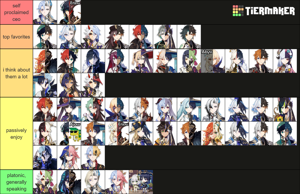 | Ayaitto, Neuvifuri, Zhongven, Zhongtao, Haino, Kaeluc, Enjou/Kinich, Zhongxiao, Diluven, Yelone, Neuviyato, Ninglan, Candehya, Kazuscara, Mavuitano, Rosakae, Monafischl, Shinosara, Dainslumi, Zhongchi, more here |